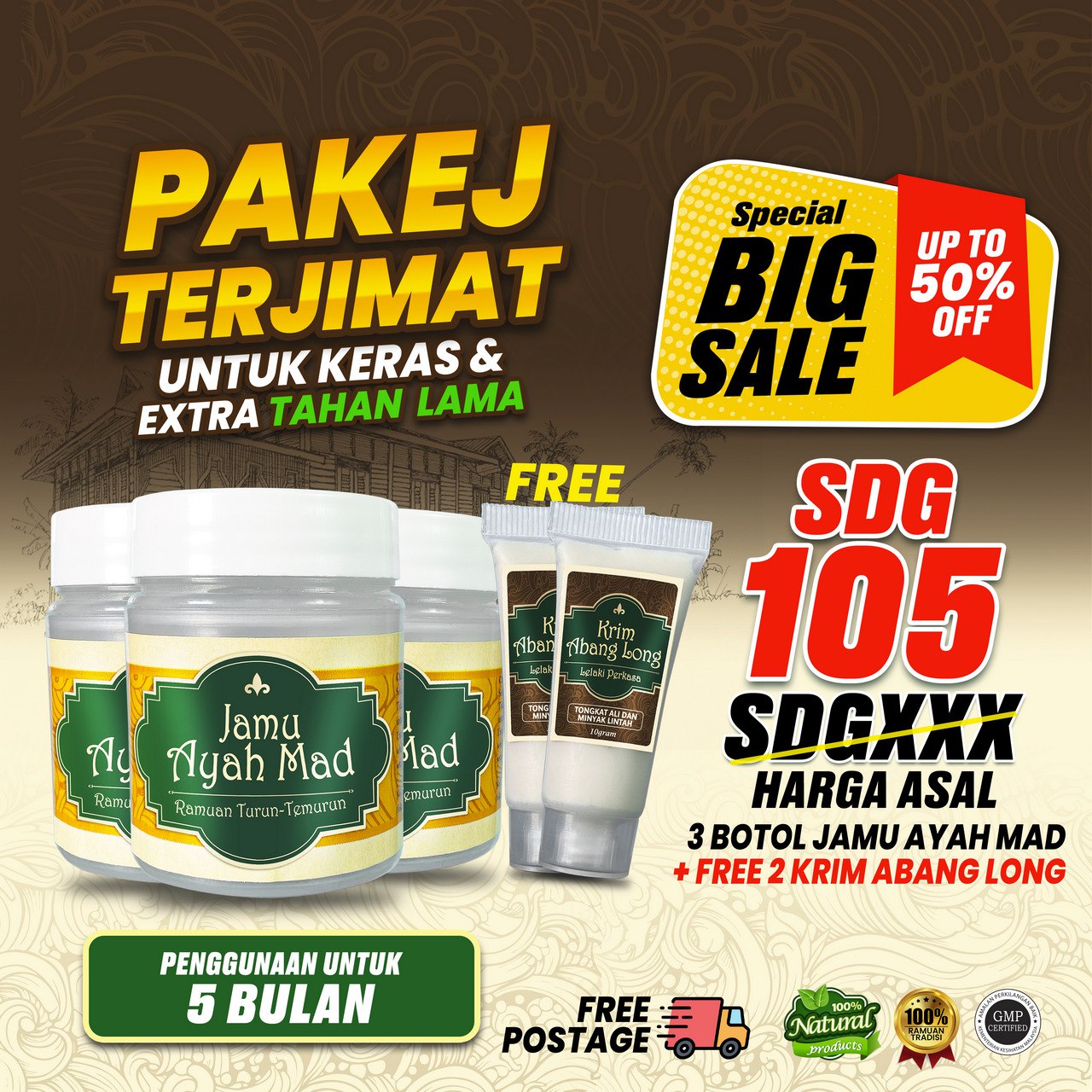 Original price was: RM320.00.RM157.50Current price is: RM157.50.1 Jamu Ayah Mad+ 1 Krim Abg Long